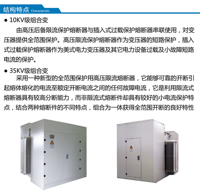 本產品是滿足日益增長的光伏發電的供電要求,在本公司常規組合式變壓器基礎上消化吸收外內技術結合內需求自行開發的系列產品,該產品具有體積小、重量輕、安裝方便、低噪聲、低損耗、防盜、過負荷能力大、全范圍熔斷器保護、維護簡單等特點。